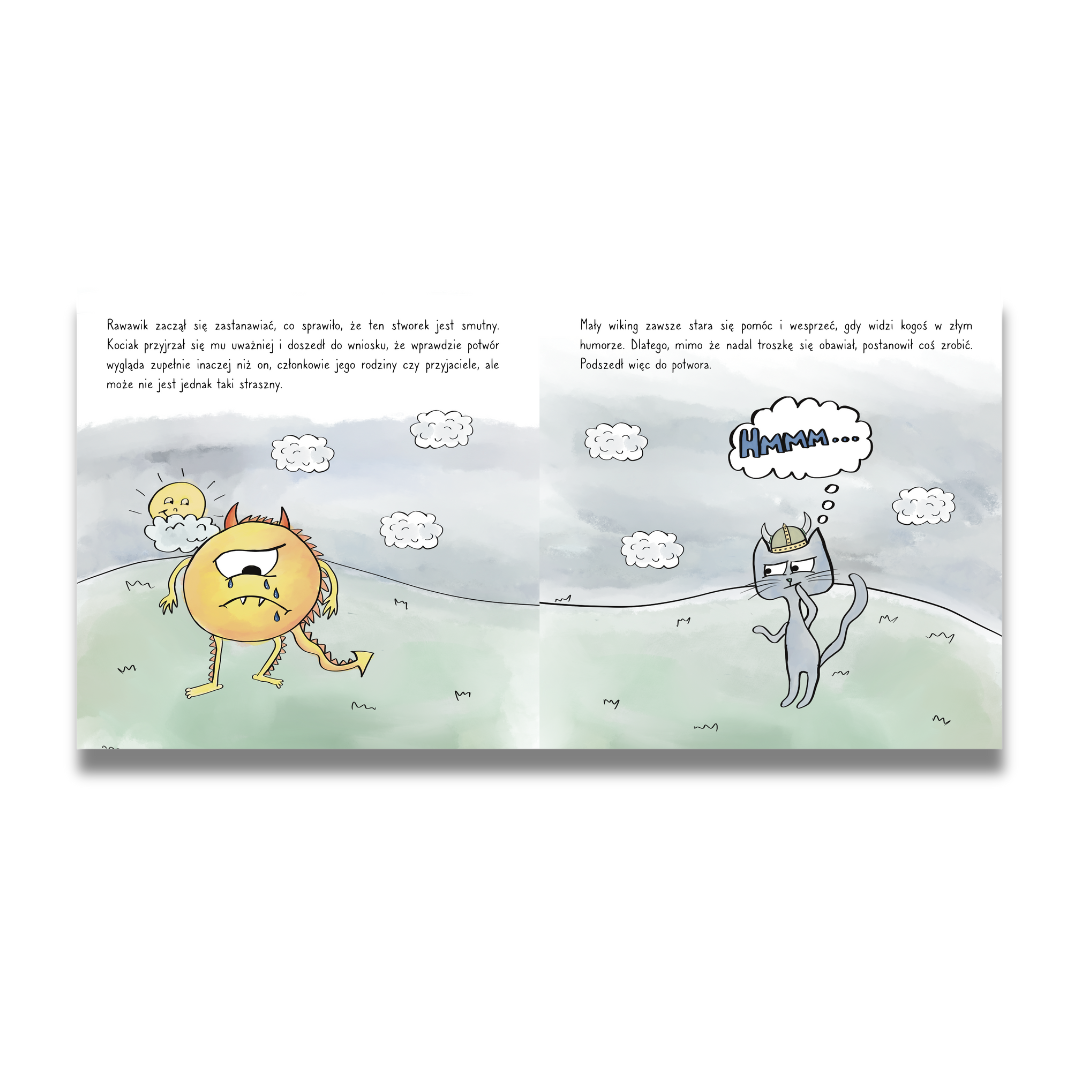 Rawawik ma swój ukochany plac zabaw, na którym uwielbia spędzać czas. Pewnego popołudnia podczas zabawy przytrafia mu się całkiem niezwykła przygoda. Otóż kociak spotyka… potwora. Początkowo Rawawik jest wystraszony nie na żarty. Potwory są przecież przerażające i straszą innych. Tylko czy na pewno? Gdy Rawawik lepiej poznaje tego stworka, okazuje się, że pozory mogą mylić, a potwór może być najłagodniejszym stworzeniem na świecie.
